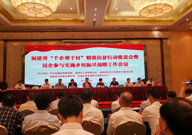 5月23日,福建省“千企帮千村”精准扶贫行动推进会暨民企参与实施乡村振兴战略工作会议在福州永泰召开。会上表彰了一批“千企帮千村”工作先进企业、商会,发出助力苏区老区脱贫攻坚和参与实施乡村振兴战略的倡议,举行乡村振兴结对帮扶签约仪式。