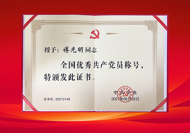 2021年是中国共产党百年华诞,七一前夕,中共中央表彰一批全国优秀共产党员、优秀党务工作者和先进基层党组织,他榜上有名,荣获全国优秀共产党员称号。