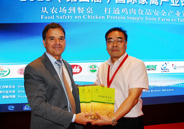 导读:在2015年8月21至22日于上海召开的、主题为“从农场到餐桌,打通鸡肉食品安全产业链”的第四届国际家禽产业论坛上,沃尔玛副总裁弗兰克·扬纳斯,向圣农发展股份有限公司常务副总裁傅细明,赠送了他撰写的《食品安全文化》一书。
